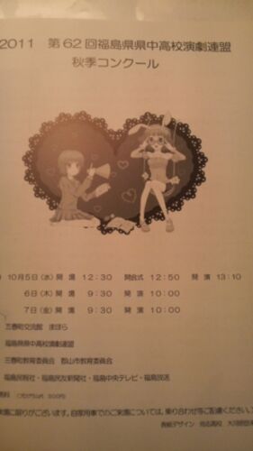2011 第62回 福島県県中高校演劇連盟 秋季コンクール!! ファッションショーのおかげで睡眠二時間で郡山行きの新幹線に飛びのり、郡山の愛すべき友人達に助けられ、野暮用をすまし、会場に着きましてm(__)m みんなありがとう! 開会式をして、さあ! 本番!…